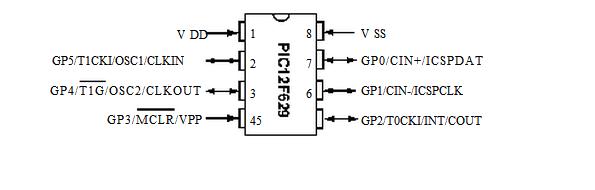 PIC12F675-I/P features: (1)6 I/O Pins with Individual Direction Control High Current Sink/Source for Direct LED Drive; (2)Analog Comparator module with; One analog comparator; (3)Programmable on-chip comparator voltage reference (CVREF) module; (4)Programmable input multiplexing from device inputs; (5)Comparator output is externally accessible; (6)Analog-to-Digital Converter module.